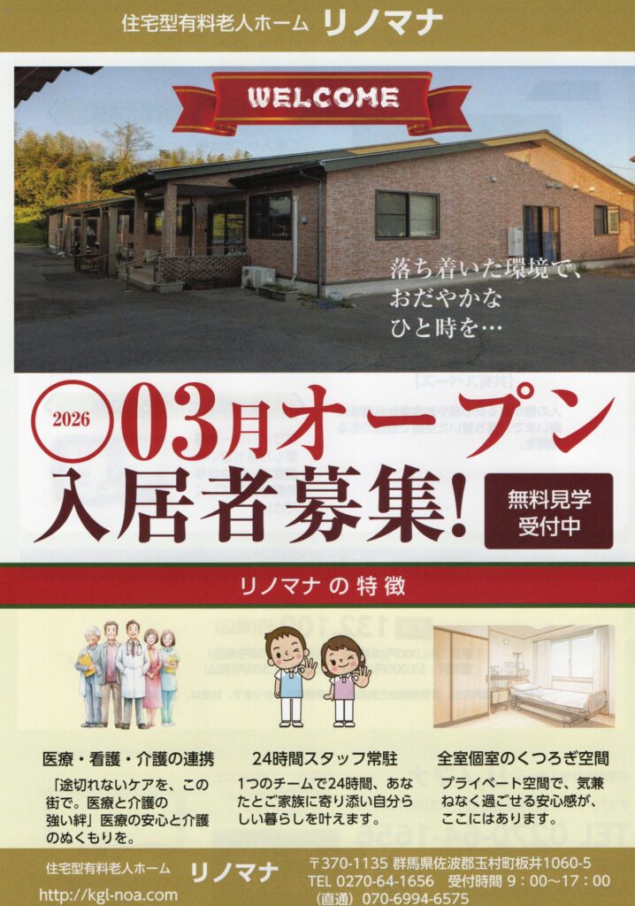 住宅型有料老人ホームのホームページも作成予定ですので、ご期待ください。